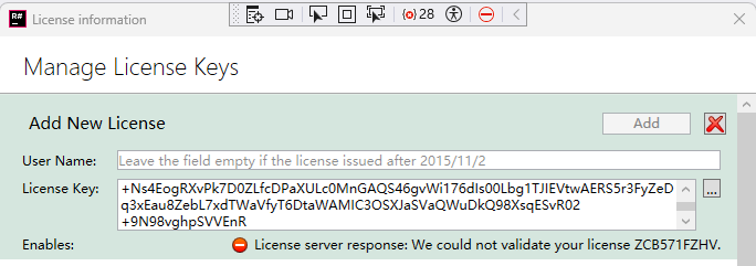 1 | public bool AddLicense(UserLicense userLicense, bool doCheckSynchronousely, bool validateLicenseKey = false) |