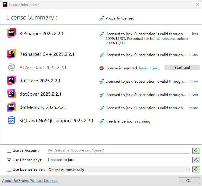 本次破解的是最新版本 2025.2.2.1:https://download.jetbrains.com/resharper/dotUltimate.2025.2.2.1/JetBrains.dotUltimate.2025.2.2.1.exe